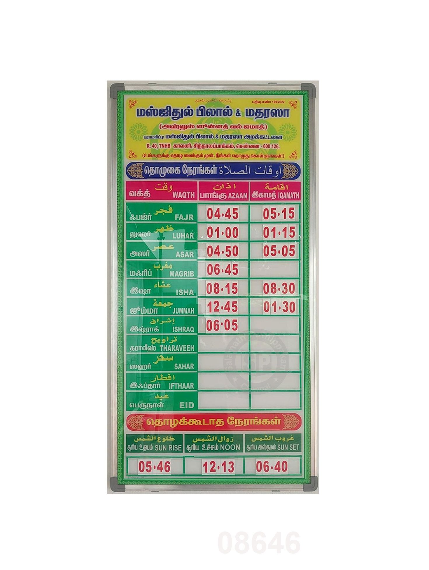 Ainthu Nera Farlu & Sunnath Thozhugai Rakatgalin Vibaram - Hanafi (Board)